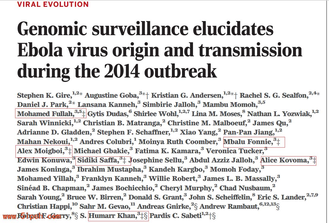 来自哈佛大学,Broad 研究院等多处科研机构的研究人员对超过 99 个埃博拉病毒基因组进行了测序和分析,这些发现将有助于研发现场快速诊断方法。58 名作者 6 名作者付出了生命的代价,上图红框作者。