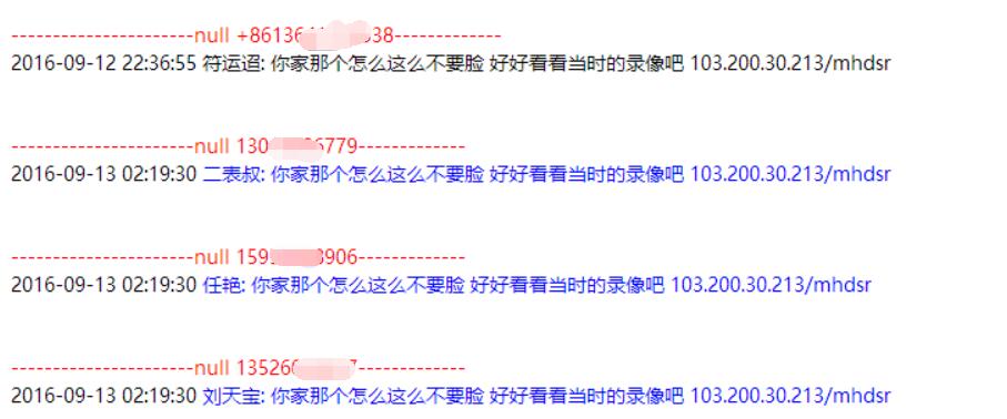 收到短信内容“ 收信人真名或昵称 ,你家那个怎么这么不要脸 好好看看当时的录像吧 103.200.30.213/mhdsr”是为诈骗短信,后面的链接所带的木马 点击安装后会将手机里的通讯录和短信记录发送给诈骗分子,同时 自动给手机通讯录里所有人群发同样的短信,群发的短信内容都会以通讯录里保存的姓名开头,加上同样内容,本站已经截获相关木马,已经分析确证。目前拦截到将近 2000 人受骗并安装了木马!