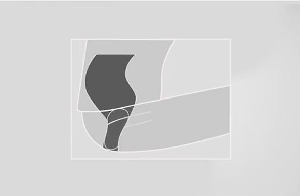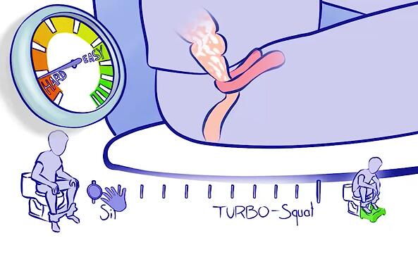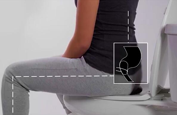 正常的使用马桶姿势,图中显示此时直肠的状态,呈弯曲装