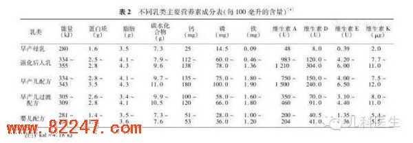 (3)早产儿配方:适用于胎龄 <34 周、出生体重 <2 000 g 的早产儿在住院期间应用。与普通婴儿配方相比,此种早产儿配方 (PF) 增加了能量密度及蛋白质等多种营养素,以满足早产儿在出生后早期生长代谢的需求。
