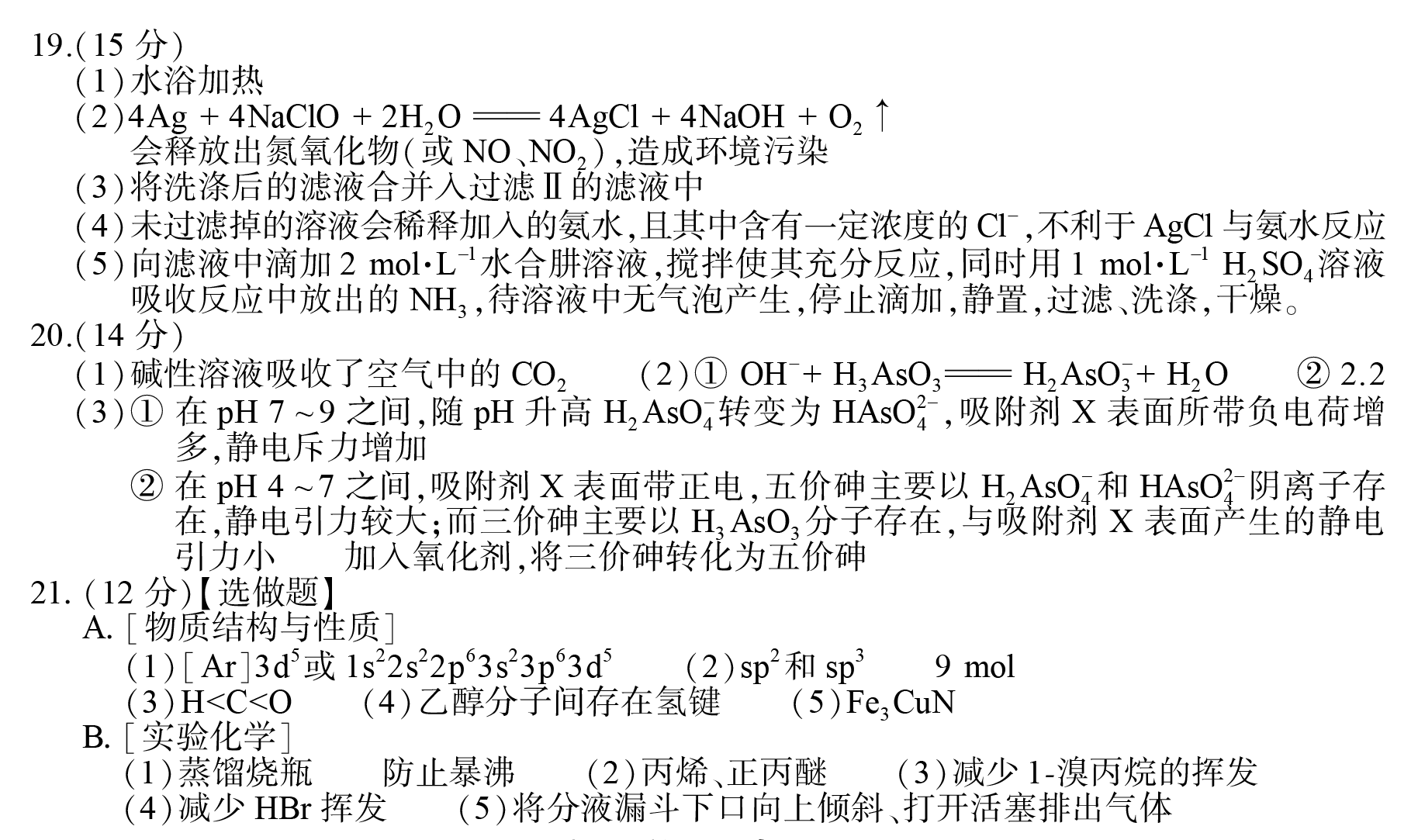 2017年江苏省普通高等学校招生全国统一考试(化学) 试题、参考答案