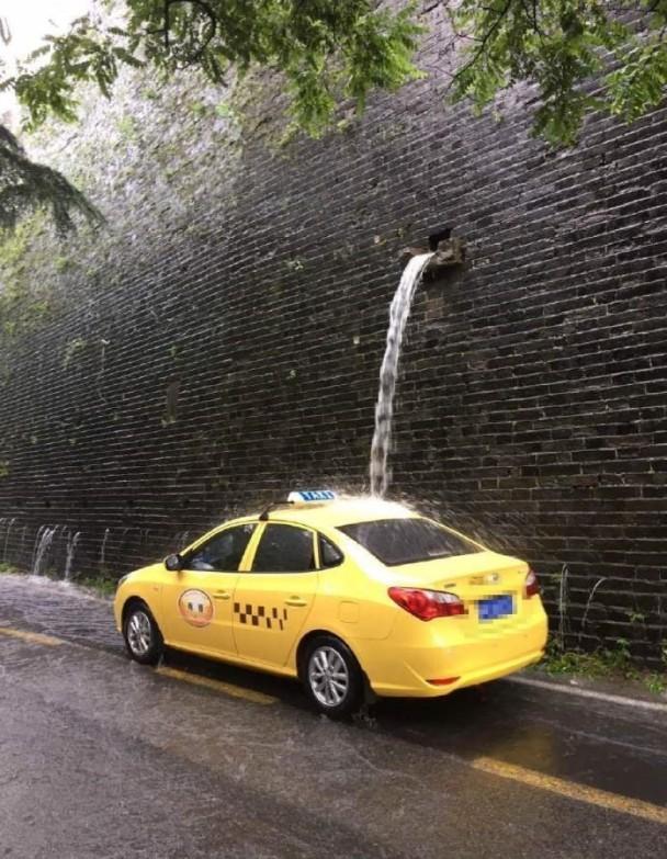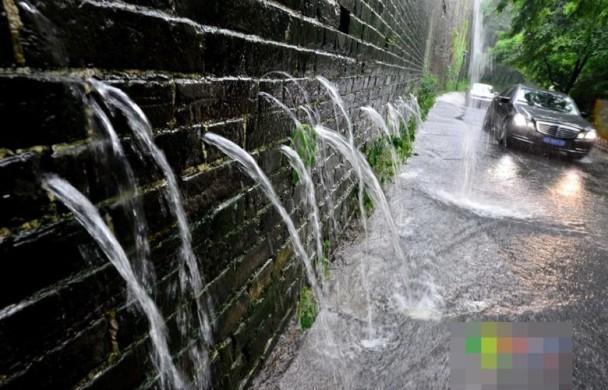 2016 年 7 月 1 日,南京遭遇强降雨天气,南京市气象台发布暴雨橙色预警,雨水渗入历史悠久的明城墙墙体内,经由其排水系统喷吐而出,形成了独特的“龙吐水”景观。