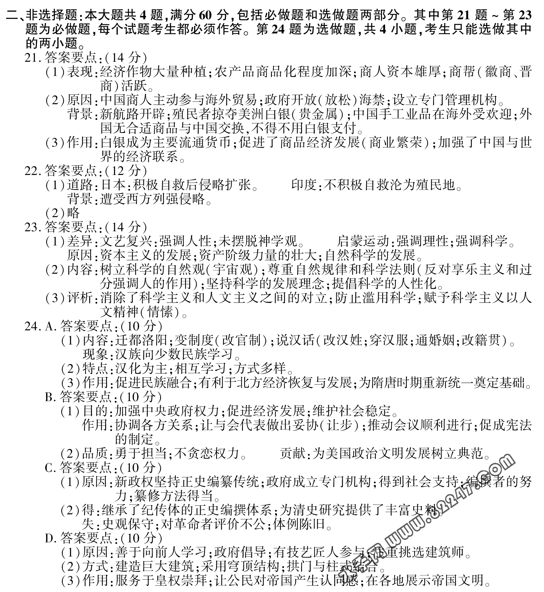 2017年江苏省普通高等学校招生全国统一考试(历史) 试题、参考答案